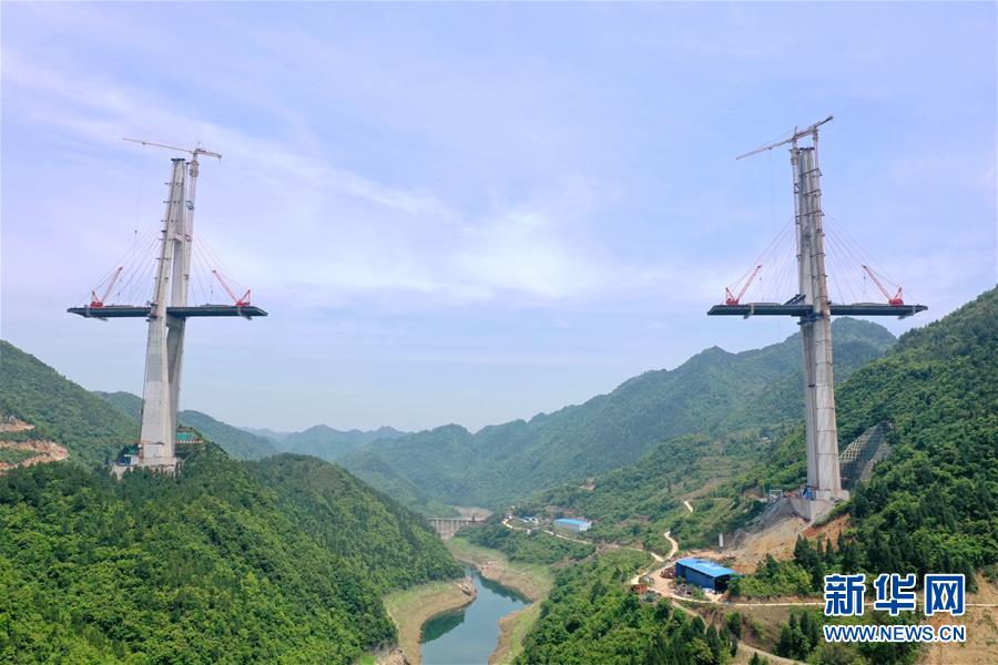 這是建設(shè)中的遵余高速湘江大橋(4月26日攝,無人機(jī)照片)。近日,由中鐵廣州局承建的貴州遵余高速湘江大橋工程在做好疫情防控的同時(shí),全力恢復(fù)生產(chǎn)建設(shè)。目前工程進(jìn)展順利,正在進(jìn)行主橋鋼梁架設(shè),預(yù)計(jì)將于8月底合龍。據(jù)了解,遵余高速湘江大橋橋梁全長(zhǎng)1700余米,主跨560米。新華社記者劉續(xù)攝