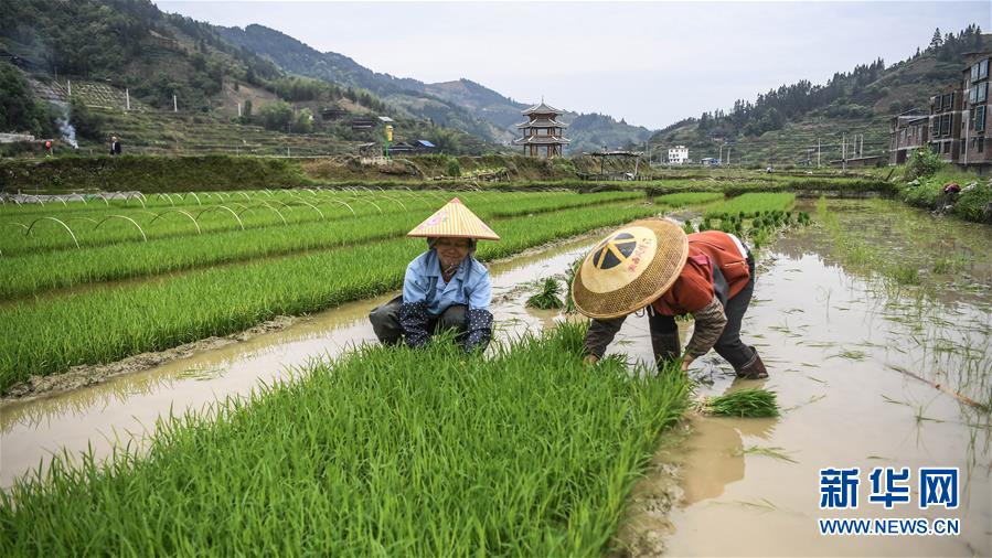 廣西三江侗族自治縣八江鎮(zhèn)平善村村民在田間拔秧苗(4月25日攝)。目前,廣西柳州市三江侗族自治縣群眾抓住時令,搶種早稻,培育靈芝和果蔬等經(jīng)濟(jì)作物,全力發(fā)展生產(chǎn),決戰(zhàn)脫貧攻堅。三江侗族自治縣地處滇黔桂石漠化片區(qū),是國家扶貧開發(fā)工作重點縣。新華社記者張愛林?jǐn)z