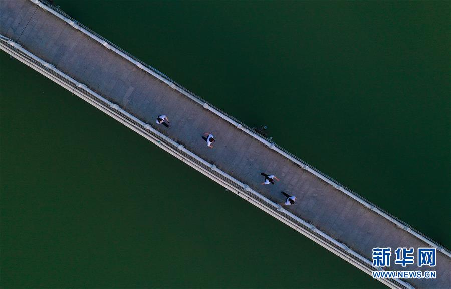 4月27日,市民在翁源縣龍仙鎮(zhèn)滃江的棧橋上漫步(無人機照片)。廣東省韶關市翁源縣地處南嶺南麓,是國家重點生態(tài)功能區(qū)。近年來,經(jīng)濟發(fā)展曾經(jīng)滯后的翁源牢固樹立綠水青山就是金山銀山的發(fā)展理念,促進生態(tài)保護和經(jīng)濟社會協(xié)調(diào)發(fā)展。新華社記者劉大偉攝