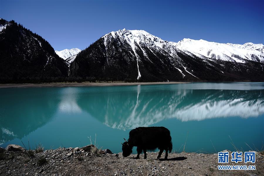 這是4月27日拍攝的然烏湖風光。然烏湖位于西藏八宿縣境內,湖水與雪山、藍天相互映襯,景色如畫。新華社記者詹彥攝