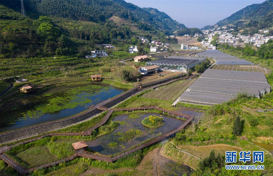 這是4月29日拍攝的四川珙縣三合村現(xiàn)代農(nóng)業(yè)產(chǎn)業(yè)示范園區(qū)及旅游休閑設(shè)施(無人機(jī)照片)。