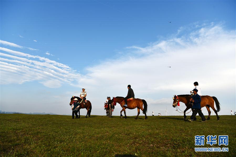 5月3日,游客在貴州省龍里大草原景區(qū)騎馬觀光?!拔逡弧毙¢L假期間,貴州省黔南布依族苗族自治州龍里大草原景區(qū)天氣怡人,高山草原風(fēng)光吸引游客前來游玩。新華社記者 楊文斌 攝