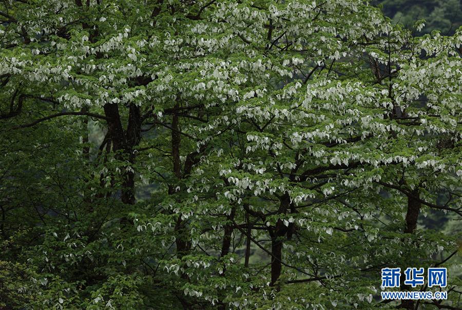 位于四川省滎經(jīng)縣的龍蒼溝國(guó)家森林公園里,鴿子花盛開(kāi)(5月4日攝)。目前,位于四川省大相嶺山脈東麓北坡的龍蒼溝國(guó)家森林公園里,約8萬(wàn)畝鴿子花盛開(kāi),猶如鴿群展翅欲飛。鴿子花即珙桐花,珙桐是珍稀植物,有著植物“大熊貓”“活化石”之稱(chēng),是國(guó)家一級(jí)保護(hù)植物,也是著名的觀(guān)賞植物。2008年,華中農(nóng)業(yè)大學(xué)、湖北民族學(xué)院和四川省縈經(jīng)縣林業(yè)部門(mén)聯(lián)合對(duì)龍蒼溝森林公園的珙桐進(jìn)行了種群生態(tài)學(xué)調(diào)查,發(fā)現(xiàn)珙桐在這里共分布約8萬(wàn)畝,集中成片分布近4萬(wàn)畝。珙桐面積之大、株數(shù)之多、密度之高,十分罕見(jiàn)。新華社記者 江宏景 攝