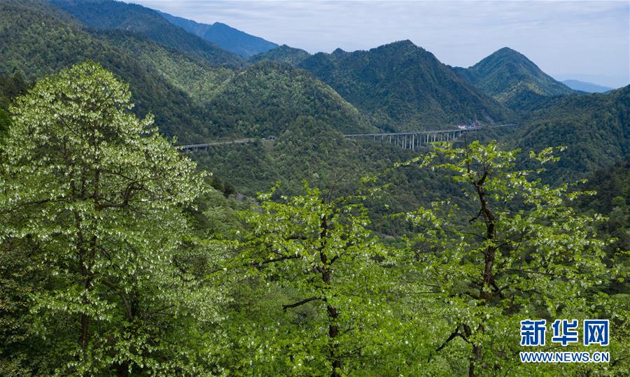 位于四川省滎經(jīng)縣的龍蒼溝國家森林公園里,鴿子花盛開(5月4日攝,無人機照片)。目前,位于四川省大相嶺山脈東麓北坡的龍蒼溝國家森林公園里,約8萬畝鴿子花盛開,猶如鴿群展翅欲飛。鴿子花即珙桐花,珙桐是珍稀植物,有著植物“大熊貓”“活化石”之稱,是國家一級保護植物,也是著名的觀賞植物。2008年,華中農(nóng)業(yè)大學、湖北民族學院和四川省縈經(jīng)縣林業(yè)部門聯(lián)合對龍蒼溝森林公園的珙桐進行了種群生態(tài)學調查,發(fā)現(xiàn)珙桐在這里共分布約8萬畝,集中成片分布近4萬畝。珙桐面積之大、株數(shù)之多、密度之高,十分罕見。新華社記者 江宏景 攝