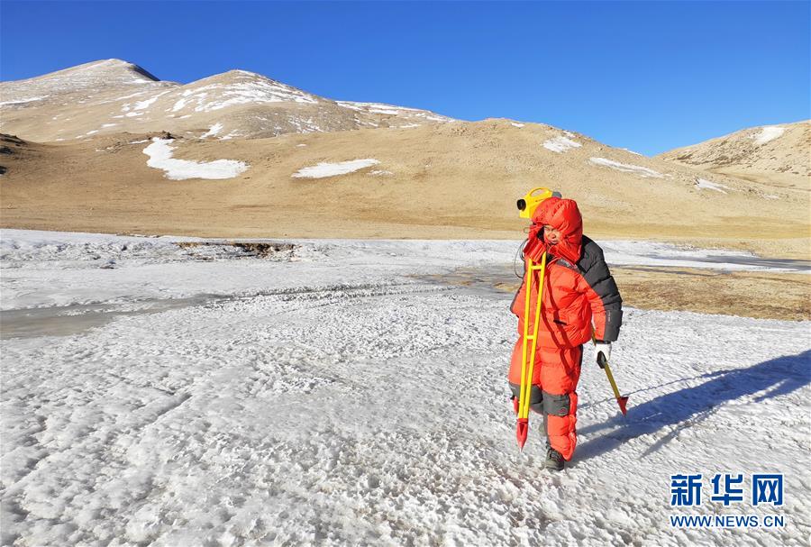 國測(cè)一大隊(duì)隊(duì)員霍申申在西藏定日縣扎西宗鄉(xiāng)境內(nèi)進(jìn)行水準(zhǔn)測(cè)量(4月4日攝)。水準(zhǔn)測(cè)量是一種利用提供水平視線的儀器(如水準(zhǔn)儀、水準(zhǔn)標(biāo)尺),測(cè)定地面不同點(diǎn)之間的高差,并以此推算高度的一種方法,是經(jīng)典大地測(cè)量的重要技術(shù)之一。在目前正在進(jìn)行的2020珠峰高程測(cè)量中,部分國測(cè)一大隊(duì)隊(duì)員承擔(dān)了水準(zhǔn)測(cè)量的任務(wù)。新華社發(fā)(楊明攝)