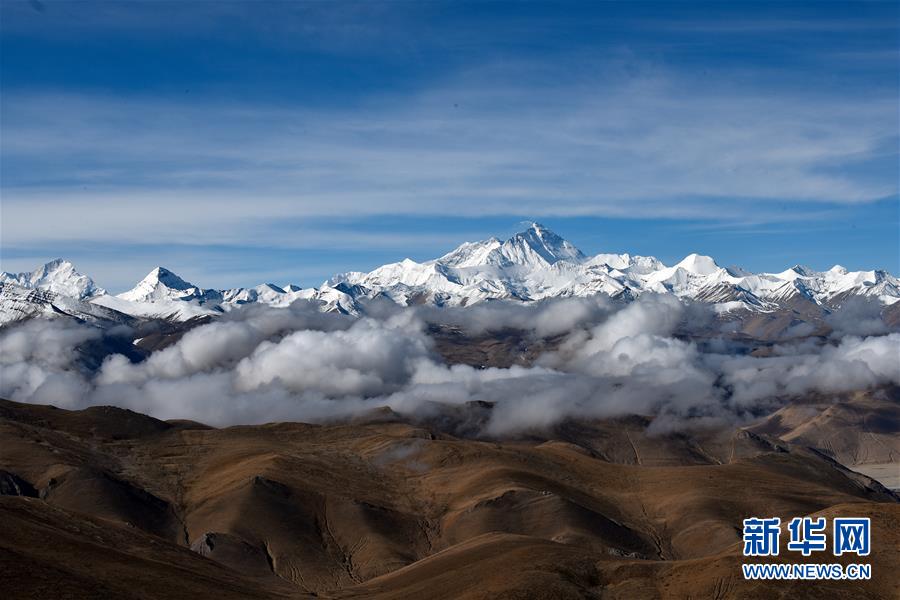 從加吾拉山口眺望珠穆朗瑪峰(5月4日攝)。珠穆朗瑪峰國家級(jí)自然保護(hù)區(qū)是以保護(hù)高山生態(tài)系統(tǒng)及其相鄰的高原自然景觀、豐富獨(dú)特的生物多樣性、具有重大科學(xué)價(jià)值的地史遺跡以及藏族歷史文化遺產(chǎn)為主的綜合性自然保護(hù)區(qū)。保護(hù)區(qū)內(nèi)生物資源豐富,景色壯美。新華社記者張京品攝