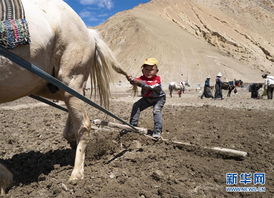 5月4日在西藏扎西宗鄉(xiāng)拍攝的小旦多。受疫情影響,他所在的幼兒園還未復(fù)課,他便到田里幫父親犁地。新華社記者普布扎西攝