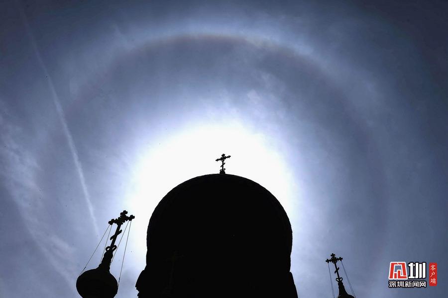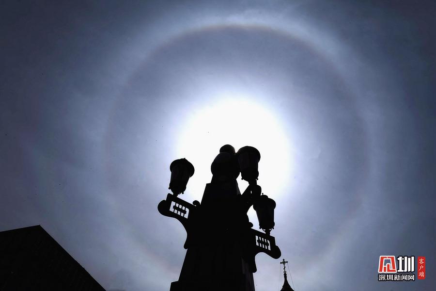 2020年5月8日,哈爾濱主城區(qū)上空呈現(xiàn)持續(xù)時間近一整天的罕見超大日暈,日暈與各種參照物構成美輪美奐的自然天象景觀,令人贊不絕口嘖嘖稱奇。本次日暈環(huán)形巨大、色彩絢爛亮麗、持續(xù)時間長等特點,適合公眾肉眼觀賞。