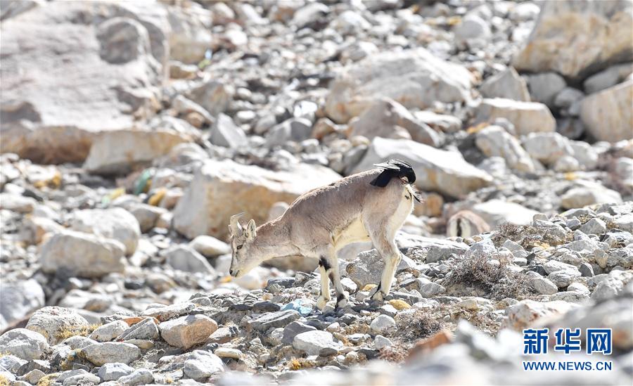 黃嘴山鴉停在巖羊背上(5月8日攝)。當(dāng)日,一群巖羊在珠峰大本營(yíng)周?chē)捠?,黃嘴山鴉飛到巖羊身上停留,構(gòu)成一幅幅生動(dòng)有趣的雪域圖畫(huà)。新華社記者普布扎西攝