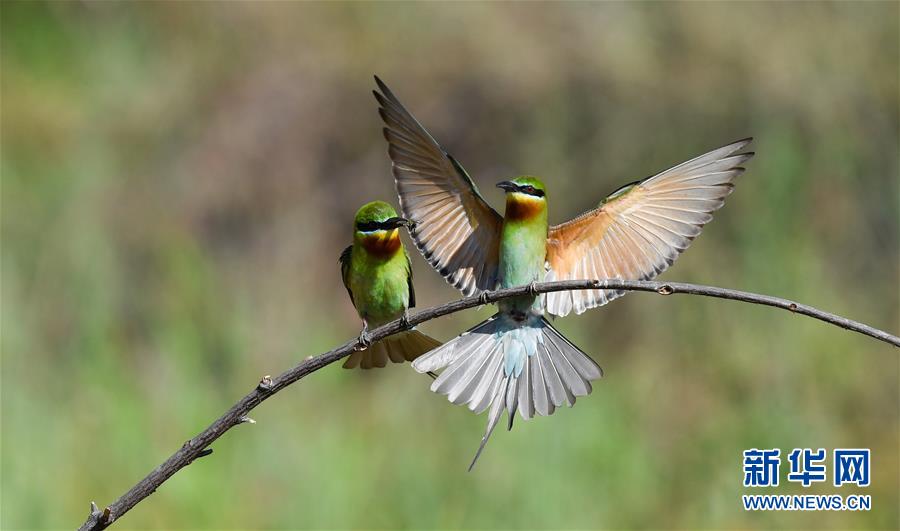 在??谖逶春酉掠畏浠⒈Wo(hù)小區(qū),栗喉蜂虎在樹(shù)枝上休息(5月7日攝)。