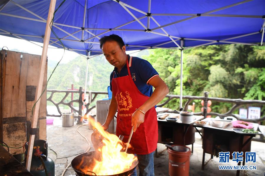 施六金在自家開(kāi)的農(nóng)家樂(lè)為客人準(zhǔn)備午餐(4月25日攝)。1973年出生于十八洞村的施六金,由于父親患病很早就放棄學(xué)業(yè)和母親扛起了家庭的重?fù)?dān)。為了生活,他還曾遠(yuǎn)去東南亞打工。2015年,看到家鄉(xiāng)的變化,施六金回到村里開(kāi)起了農(nóng)家樂(lè),年度家庭人均純收入也從2014年的1715元增長(zhǎng)到了2019年的35696元。2018年,施六金與心愛(ài)的人組建了家庭。今年初,施六金與愛(ài)人迎來(lái)了一個(gè)大胖小子?!白鋈俗鍪乱没貓?bào)和感恩?!笔┝鸾o剛出生的兒子取名施澤恩。新華社記者薛宇舸攝