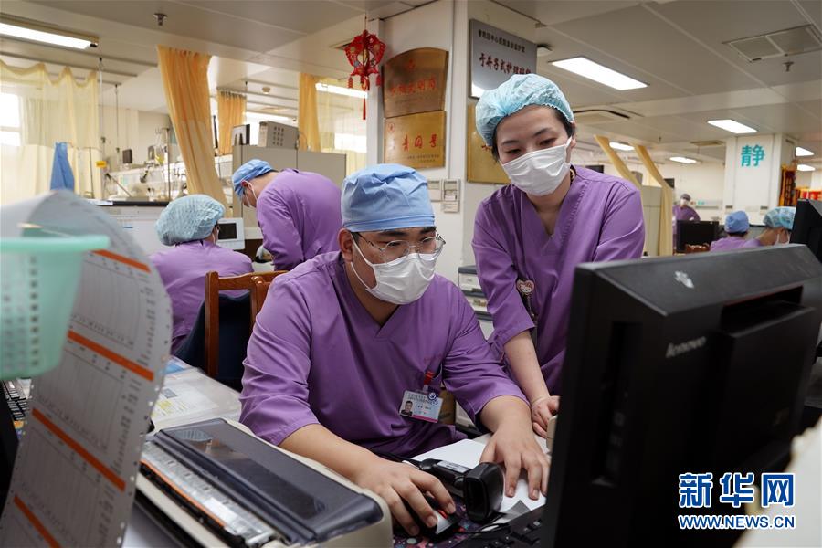 5月10日,在上海市普陀區(qū)中心醫(yī)院急診重癥監(jiān)護(hù)室,護(hù)士們在工作。新華社記者劉穎攝