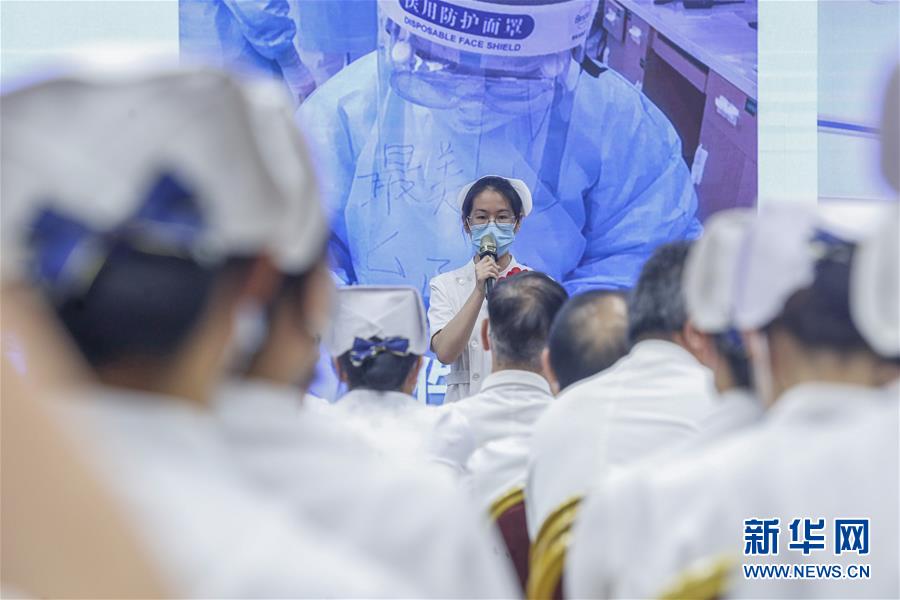 5月11日,援鄂醫(yī)療隊(duì)隊(duì)員代表在活動上分享戰(zhàn)“疫”故事。在國際護(hù)士節(jié)到來之際,北京大學(xué)人民醫(yī)院11日舉辦慶祝護(hù)士節(jié)暨優(yōu)秀集體和個(gè)人表彰活動,并邀請?jiān)踽t(yī)療隊(duì)護(hù)士代表分享戰(zhàn)“疫”故事。我國今年護(hù)士節(jié)的主題為“致敬護(hù)士隊(duì)伍,攜手戰(zhàn)勝疫情”。新華社記者張玉薇攝