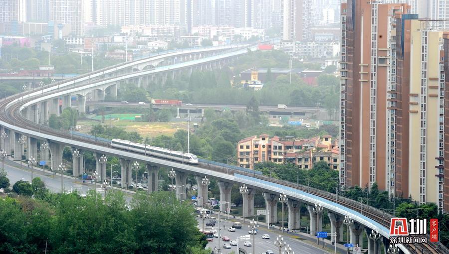 2020年5月11日,四川省成都市,犀浦站是全國首個鐵路與地鐵換乘車站。圖為動車、地鐵同時運行在線路上。