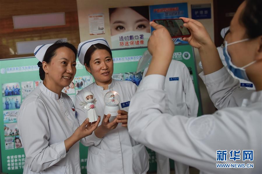 5月11日,在北京地壇醫(yī)院組織的護(hù)士節(jié)活動(dòng)上,護(hù)士們在拍照留念。北京地壇醫(yī)院是北京市收治新冠肺炎患者的定點(diǎn)醫(yī)院之一,醫(yī)院的醫(yī)護(hù)人員一直奮戰(zhàn)在抗擊疫情的一線。在國際護(hù)士節(jié)前夕,記者前往北京地壇醫(yī)院,記錄下抗疫一線護(hù)士的日常工作狀態(tài)。新華社記者彭子洋攝
