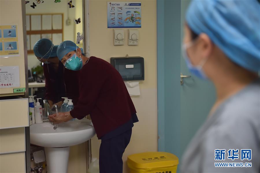 5月11日,在北京地壇醫(yī)院感染二科護士站,護士高新悅(左)邊洗手邊和同事溝通病人病情。北京地壇醫(yī)院是北京市收治新冠肺炎患者的定點醫(yī)院之一,醫(yī)院的醫(yī)護人員一直奮戰(zhàn)在抗擊疫情的一線。在國際護士節(jié)前夕,記者前往北京地壇醫(yī)院,記錄下抗疫一線護士的日常工作狀態(tài)。新華社記者彭子洋攝