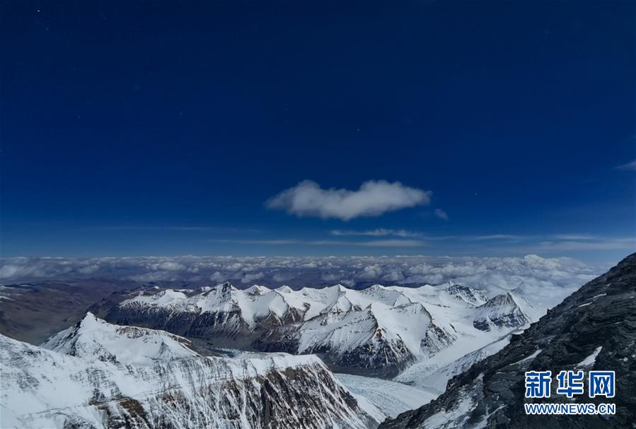 從珠峰海拔7028米以上拍攝的壯美景色(5月12日攝)。從珠峰海拔7028米的一號營地繼續(xù)向上攀登,沿途景色十分壯美。新華社特約記者拉巴攝