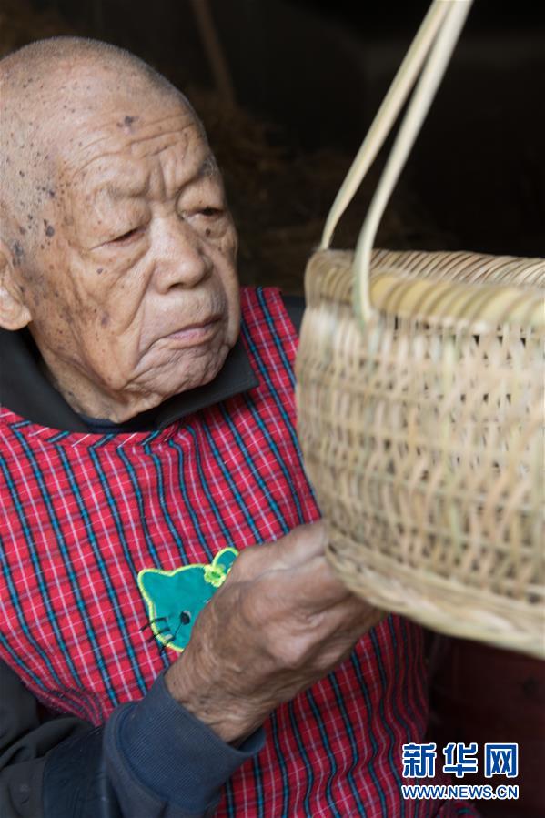 5月12日,浙江諸暨龍溪村的百歲老人蔡渭東在家中查看一個剛編的竹籃。浙江諸暨東和鄉(xiāng)龍溪村有一位102歲的老人蔡渭東,他從12歲開始拜師學藝,做了90年的篾匠,如今依然耳聰目明,每天堅持編織篾器。蔡渭東老人說他舍不得丟掉這份老手藝,也希望年輕人能傳承下去。新華社記者翁忻旸攝