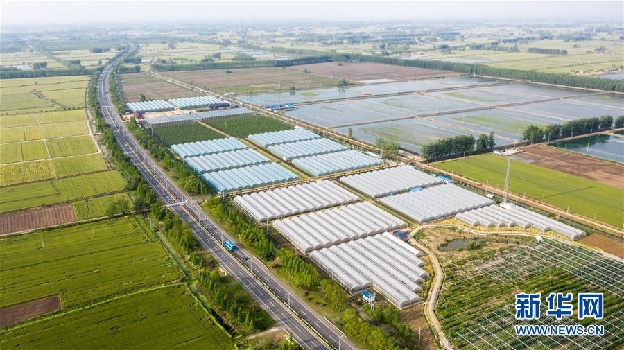 這是5月11日拍攝的金湖縣萬畝連片農(nóng)業(yè)示范帶(無人機照片)。