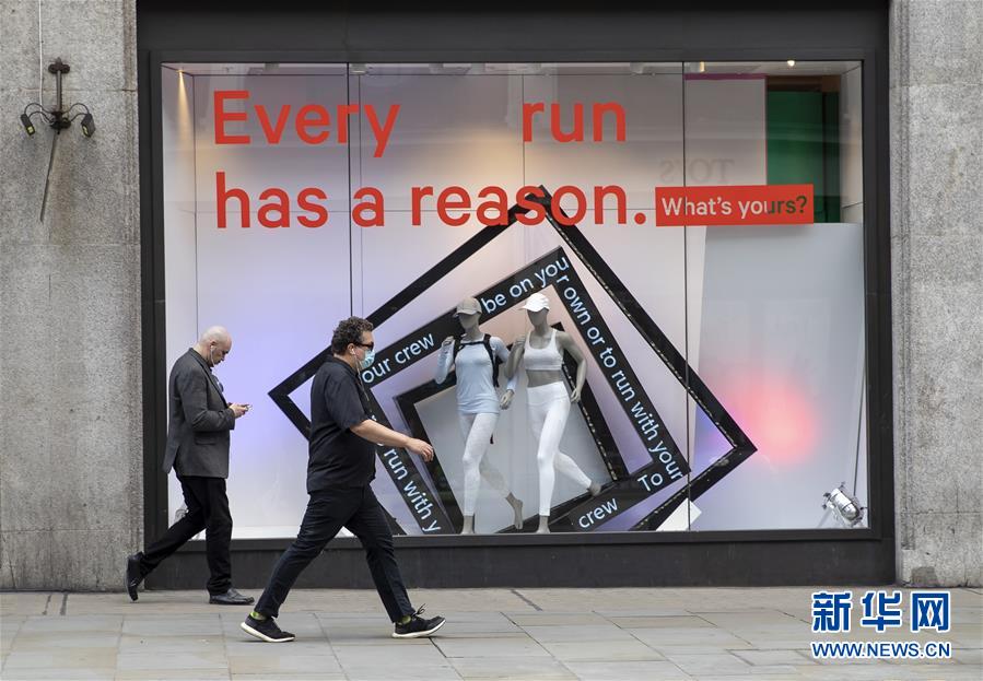 5月12日,人們從英國倫敦攝政街關(guān)閉的店鋪前經(jīng)過。新華社記者韓巖攝