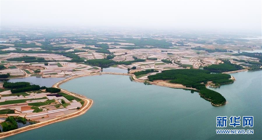 5月13日拍攝的青峰嶺水庫庫區(qū)景色(無人機照片)。新華社記者王凱攝