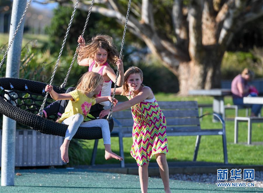 5月14日,孩子們?cè)谑锥蓟蒽`頓郊外公園的游樂(lè)場(chǎng)玩耍。當(dāng)天是新西蘭從新冠疫情防控響應(yīng)三級(jí)下調(diào)到二級(jí)的第一天,經(jīng)濟(jì)活動(dòng)全面重啟,公園等公共設(shè)施首次重新開(kāi)放,中小學(xué)生將于5月18日全面返校復(fù)課。新華社記者郭磊攝