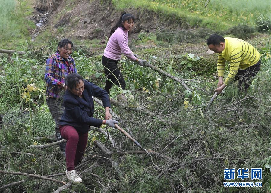 龍臺(tái)村村民在平整一處殘次林(4月1日攝)。新華社記者劉坤攝