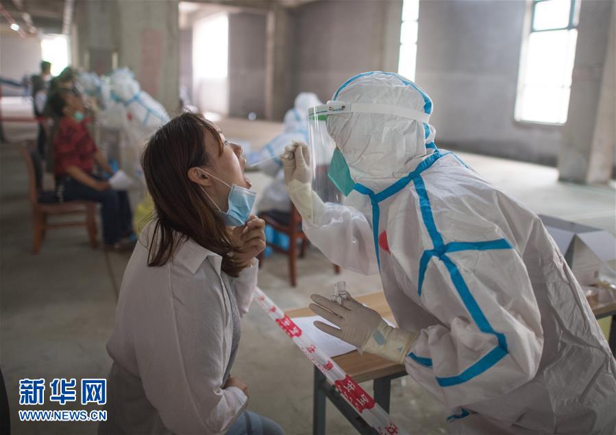 5月15日,在武漢華生漢口城市廣場(chǎng)四期檢測(cè)點(diǎn),工作人員對(duì)市民進(jìn)行核酸檢測(cè)。近日,武漢將對(duì)全市市民有序開(kāi)展核酸檢測(cè),進(jìn)一步摸清無(wú)癥狀感染者底數(shù),進(jìn)而有效管控。新華社記者肖藝九攝
