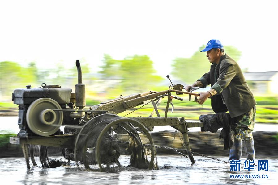 5月17日,在吉林省長(zhǎng)春市雙陽(yáng)區(qū)徐家村,農(nóng)民在水稻田間耕作。
