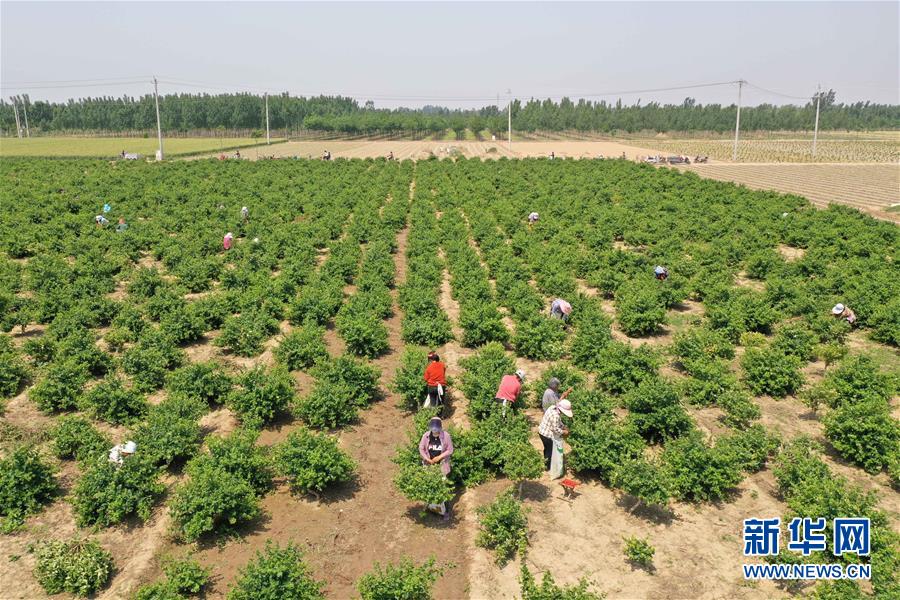 5月21日,河北省清河縣農(nóng)墾金銀花種植專業(yè)合作社社員在采收金銀花(無人機(jī)照片)。2017年以來,河北省清河縣在推進(jìn)農(nóng)業(yè)產(chǎn)業(yè)結(jié)構(gòu)調(diào)整過程中,結(jié)合市場需求,立足當(dāng)?shù)赝寥?、氣候特點(diǎn),依托公司“訂單”引導(dǎo)農(nóng)民發(fā)展金銀花種植。目前,清河縣金銀花種植面積近2000畝,帶動40多個(gè)村莊的2000余名農(nóng)民人均增收千元以上。新華社記者牟宇攝