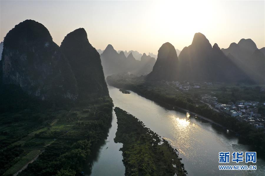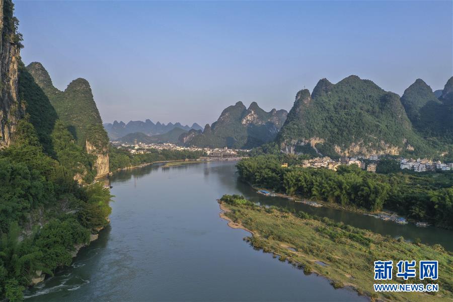 這是在廣西桂林市陽朔縣興坪鎮(zhèn)拍攝的風(fēng)光(5月19日攝,無人機照片)?!吧n蒼森八桂,茲地在湘南。江作青羅帶,山如碧玉篸……”一千多年前,唐朝詩人韓愈寫盡桂林山水之美。初夏時節(jié),在廣西桂林市陽朔縣興坪鎮(zhèn),藍天白云下,煙雨朦朧中,桂林山水盡顯秀美。新華社記者 周華 攝