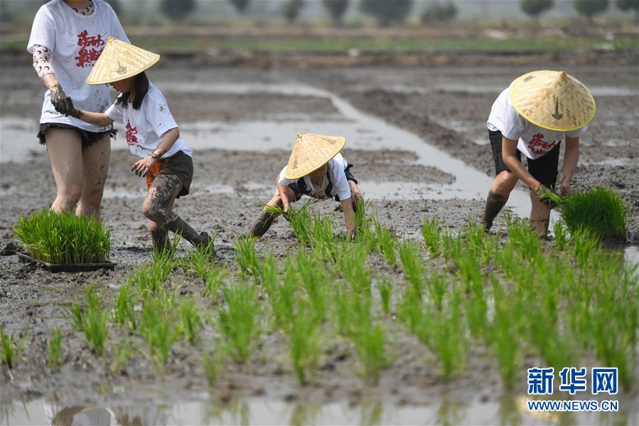 5月24日,小朋友與家長在稻田里參加親子插秧比賽。當(dāng)日,十余名小朋友在家長的帶領(lǐng)下來到浙江省湖州市吳興區(qū)八里店鎮(zhèn)尹家圩糧油植保農(nóng)機專業(yè)合作社的稻田中,參加親子插秧、稻田捉魚等農(nóng)事體驗活動。新華社記者黃宗治攝