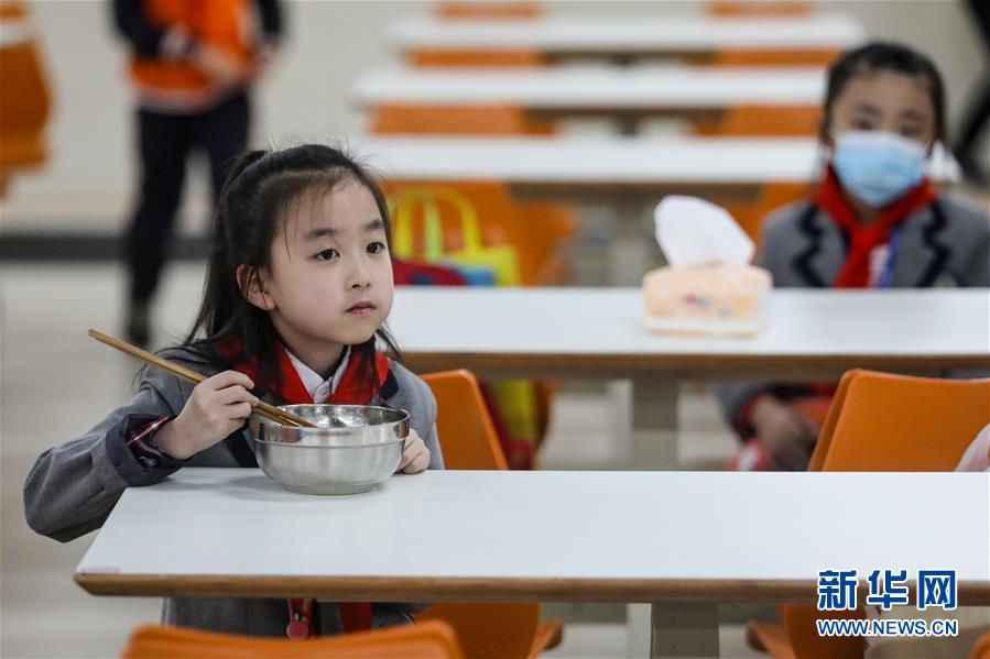5月25日,廣州市荔灣區(qū)蔣光鼐紀(jì)念小學(xué)的學(xué)生將自帶的飯盒放在教室門口的箱子里,工作人員將為學(xué)生統(tǒng)一配餐。當(dāng)日,廣州市各小學(xué)一至三年級(jí)學(xué)生正式開學(xué)復(fù)課。至此,廣州市中小學(xué)各年級(jí)已全部開學(xué)復(fù)課。新華社記者盧漢欣攝