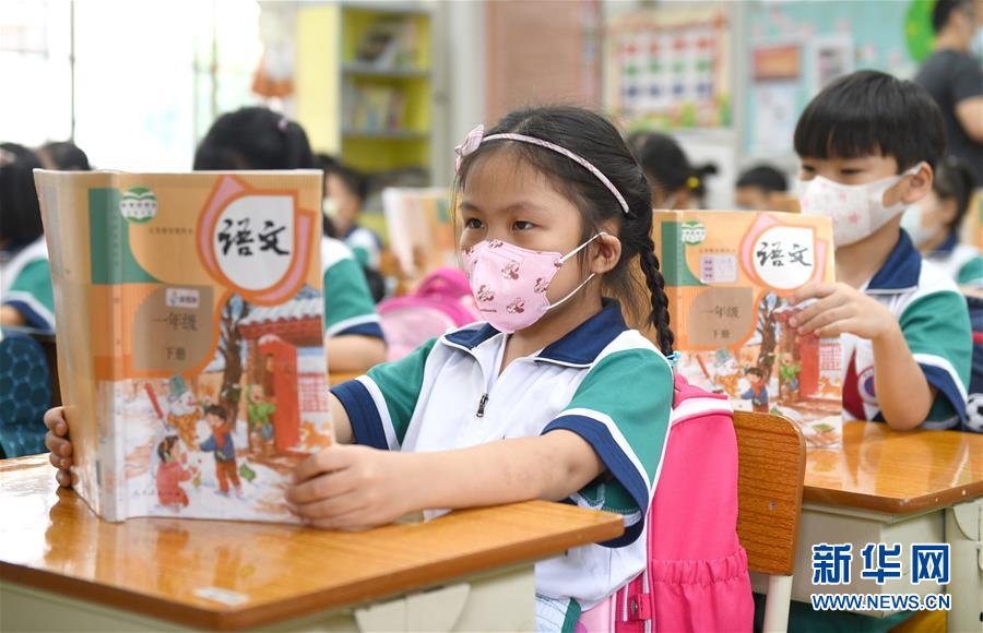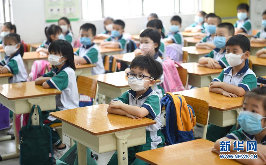 5月25日,廣州市荔灣區(qū)蔣光鼐紀(jì)念小學(xué)的學(xué)生在上課。當(dāng)日,廣州市各小學(xué)一至三年級(jí)學(xué)生正式開學(xué)復(fù)課。至此,廣州市中小學(xué)各年級(jí)已全部開學(xué)復(fù)課。新華社記者盧漢欣攝
