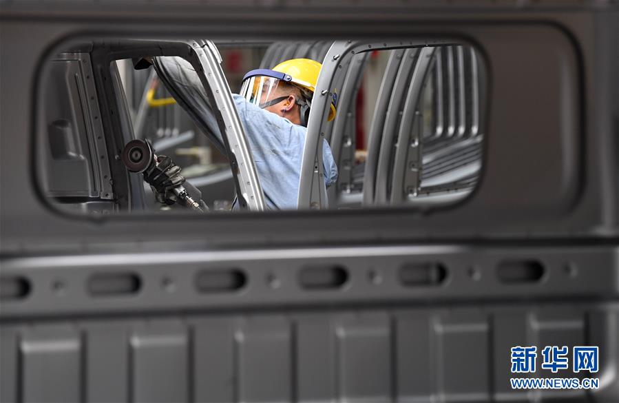 5月26日,工人在江淮汽車新港基地輕卡生產(chǎn)區(qū)內(nèi)忙碌。新華社記者劉軍喜攝
