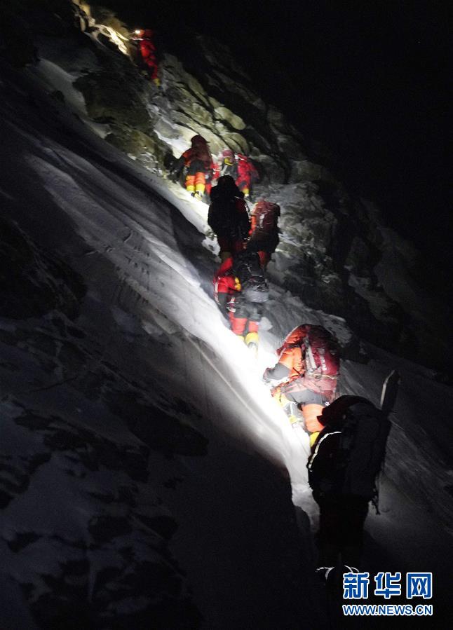 5月27日,2020珠峰高程測量登山隊(duì)正在向珠峰峰頂進(jìn)發(fā)。新華社特約記者扎西次仁攝