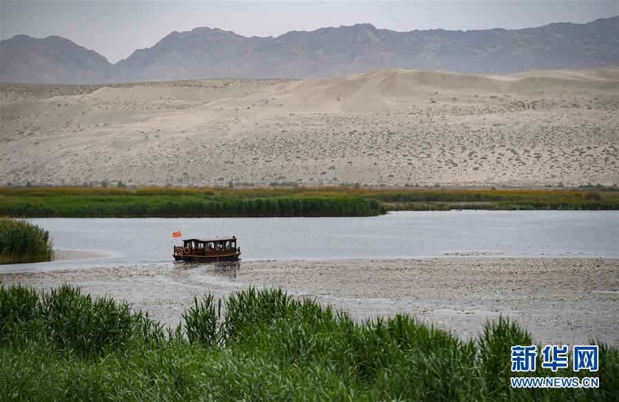 5月20日,在新疆博湖縣一處景區(qū)內(nèi),一艘游船穿梭于葦叢間。新華社記者宋彥樺攝
