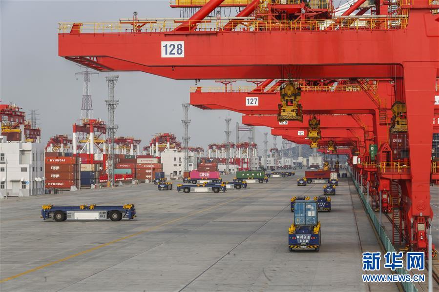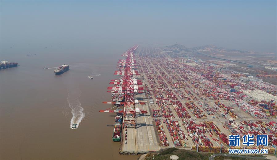 這是3月18日拍攝的上海洋山港集裝箱碼頭(無(wú)人機(jī)照片)。新華社記者丁汀攝