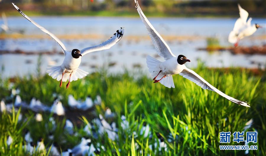 5月28日在陜西省神木市紅堿淖拍攝的遺鷗。陜西省神木市紅堿淖是中國最大的沙漠淡水湖,近年來隨著周邊生態(tài)環(huán)境改善,紅堿淖水位逐年提升,水域面積不斷擴(kuò)大,每年四至八月,都會吸引大批遺鷗來此繁衍棲息,已成為遺鷗繁殖的重要基地。新華社記者陶明攝