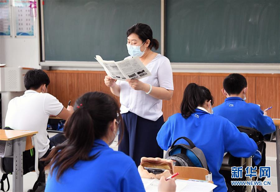 5月28日,北京市第十八中學的初三年級學生在上課。北京市第十八中學共有初三年級學生340余名,學校在做好初三年級學生中考文化課備考的同時,加強學生心理及身體素質的鍛煉,以最好的精神狀態(tài)備戰(zhàn)中考。據悉,2020年北京中考報名人數為7.5萬人,比去年增加25%。新華社記者任超攝