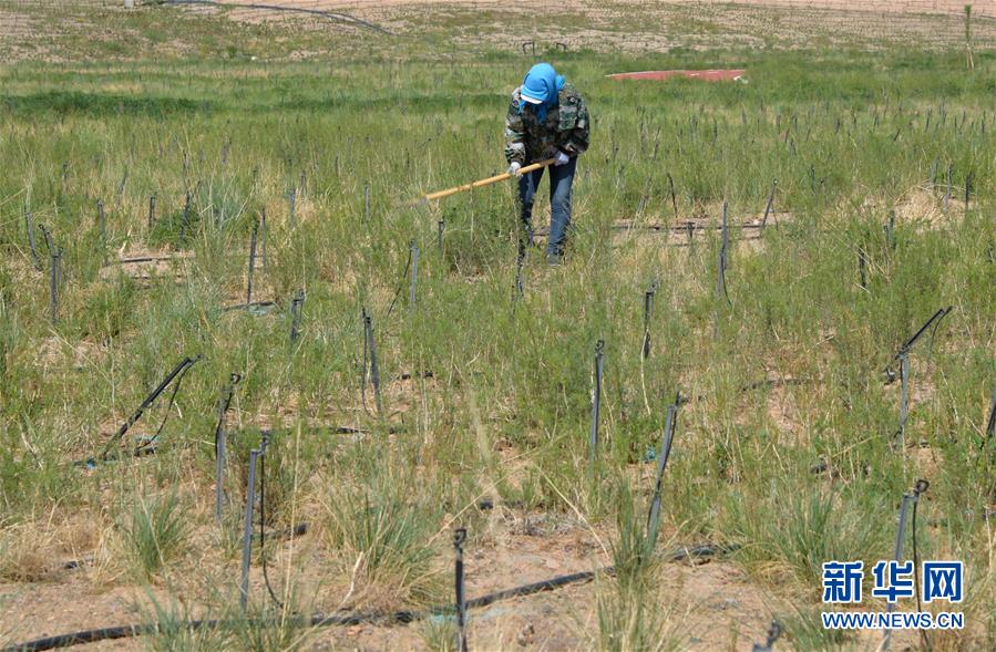 5月28日,工人在巴丹吉林鎮(zhèn)生態(tài)修復項目南部河道附近進行補植作業(yè)。2017年以來,內(nèi)蒙古阿拉善右旗在巴丹吉林鎮(zhèn)開展生態(tài)修復項目,種植適合在當?shù)厣L的馬蓮、紅柳等植物,修復生態(tài)的同時也起到美化作用。巴丹吉林鎮(zhèn)是巴丹吉林沙漠旅游景區(qū)的游客集散地,這里常年干旱少雨,水資源匱乏。新華社記者徐欽攝