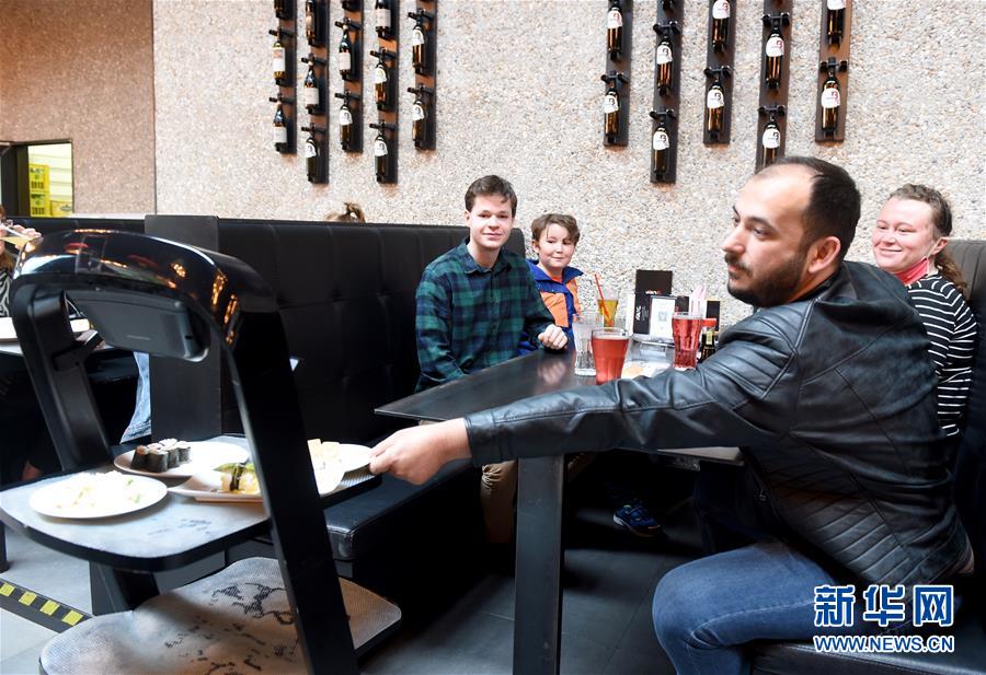 5月28日,在奧地利維也納一家亞洲餐廳內(nèi),機器人給顧客上菜。維也納的一家亞洲餐廳于疫情期間重新營業(yè)后,更多利用機器人上菜,以減少服務員和顧客之間的非必要接觸。新華社記者郭晨攝