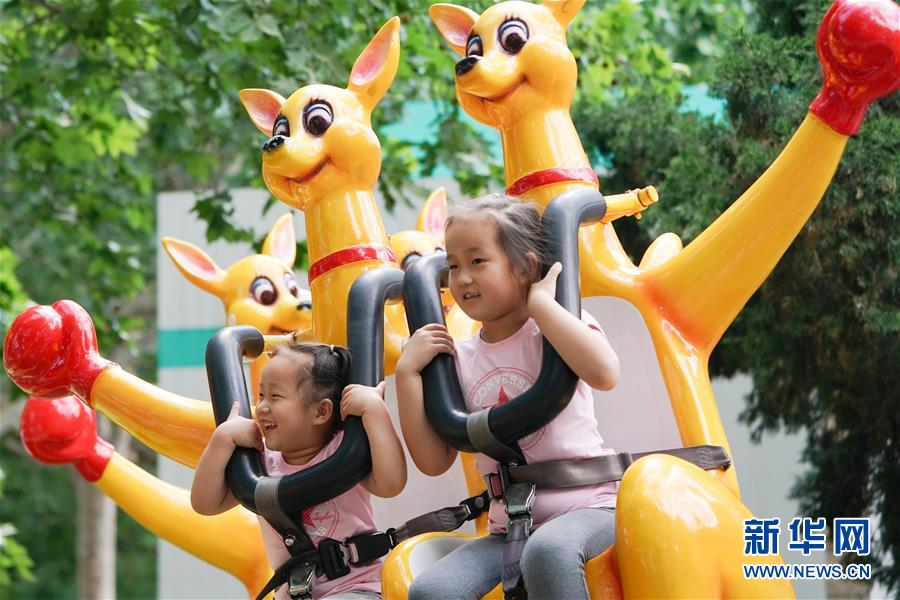 5月31日,小朋友在北京朝陽公園游玩。新華社記者鞠煥宗攝