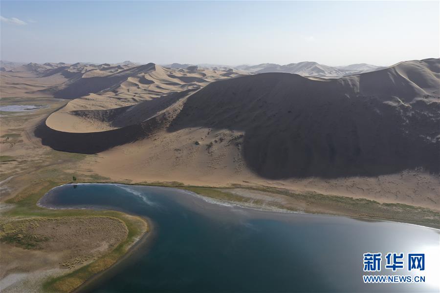 這是5月29日拍攝的巴丹吉林沙漠香根吉林湖(無人機(jī)照片)。新華社記者徐欽攝。