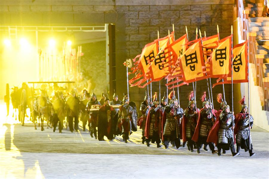 5月28日,演員在大型實(shí)景神話音樂(lè)劇《昆侖之約》中表演。5月28日,新疆文化旅游新名片——大型實(shí)景神話音樂(lè)劇《昆侖之約》在烏魯木齊南山景區(qū)上演。該劇融自然山水之美、藝術(shù)文化之光、現(xiàn)代科技之新于一體,為市民獻(xiàn)上一場(chǎng)視聽盛宴。新華社記者丁磊攝。