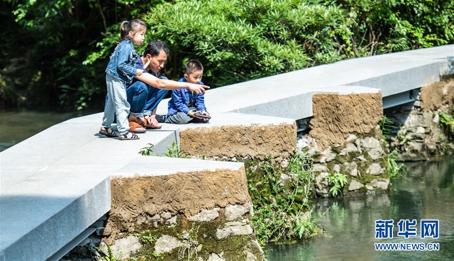 6月2日,家長帶著小朋友在貴陽市阿哈湖國家濕地公園內(nèi)游玩。初夏時節(jié),貴州省貴陽市阿哈湖國家濕地公園草木蒼翠,風景如畫,吸引人們前來休閑游玩。新華社記者陶亮攝。