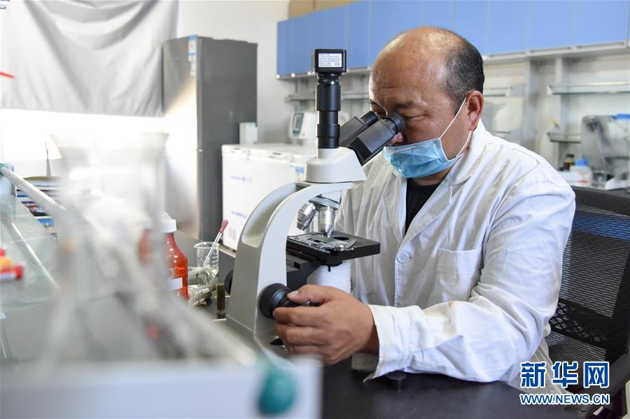 6月2日,在新疆野馬繁殖研究中心,工作人員在進(jìn)行馬糞的寄生蟲(chóng)監(jiān)測(cè)。新華社記者丁磊攝。