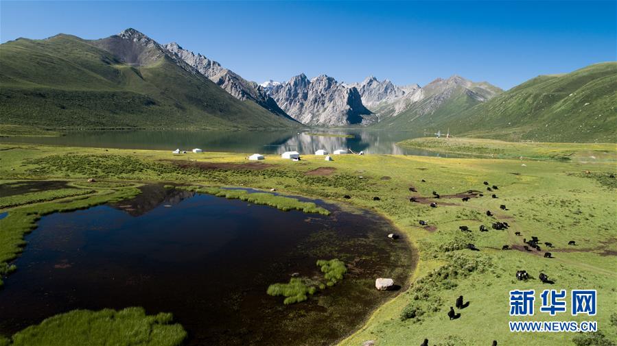 2019年7月9日拍攝的位于三江源地區(qū)的青海省果洛藏族自治州久治縣境內(nèi)的年保玉則風(fēng)光(無人機照片)。6月2日,青海省生態(tài)環(huán)境廳發(fā)布《2019年青海省生態(tài)環(huán)境狀況公報》稱,青海省三江源地區(qū)境內(nèi)的長江、黃河、瀾滄江干流流域水質(zhì)優(yōu)良,植被覆蓋度呈增長趨勢,全省生態(tài)環(huán)境狀況總體保持穩(wěn)定。新華社記者吳剛攝。