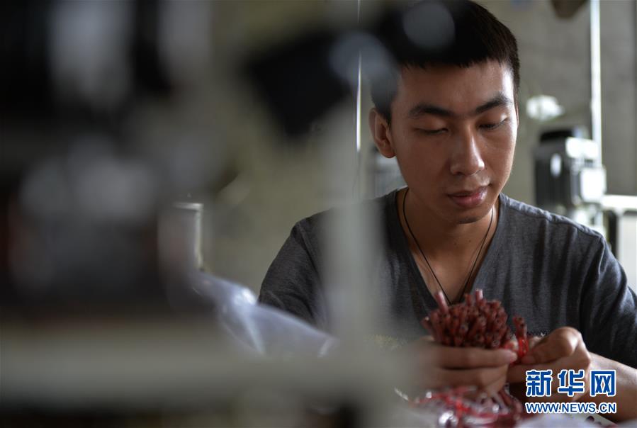 6月4日,工人在永州市新田縣一處易地搬遷集中安置點的扶貧車間里加工電器零部件。新華社記者趙眾志攝。