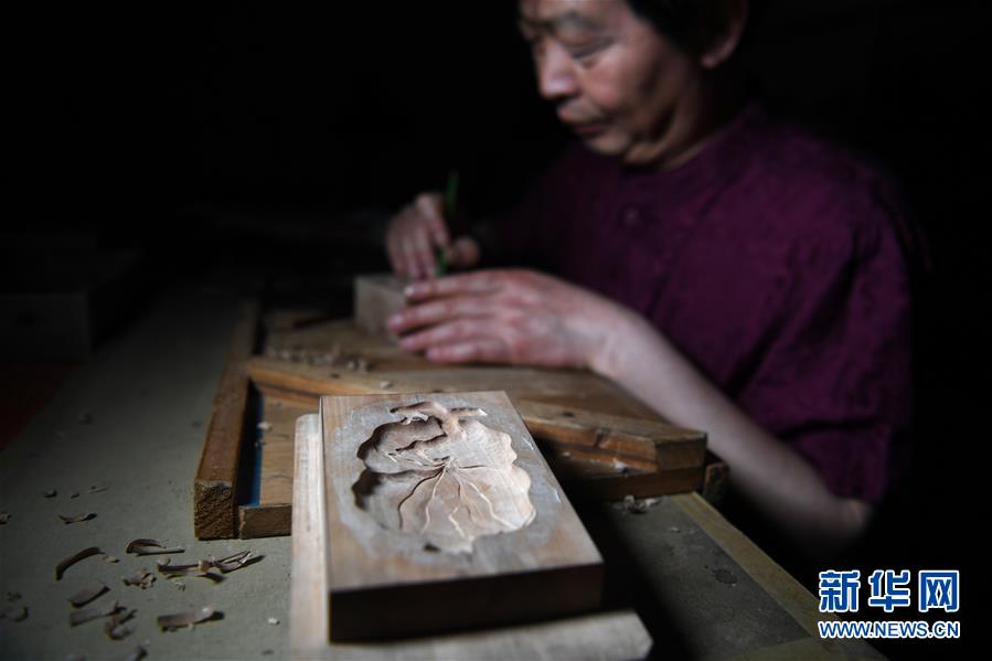 5月20日,安徽省非物質(zhì)文化遺產(chǎn)徽墨代表性傳承人項(xiàng)德勝在雕刻墨模。新華社記者劉軍喜攝。